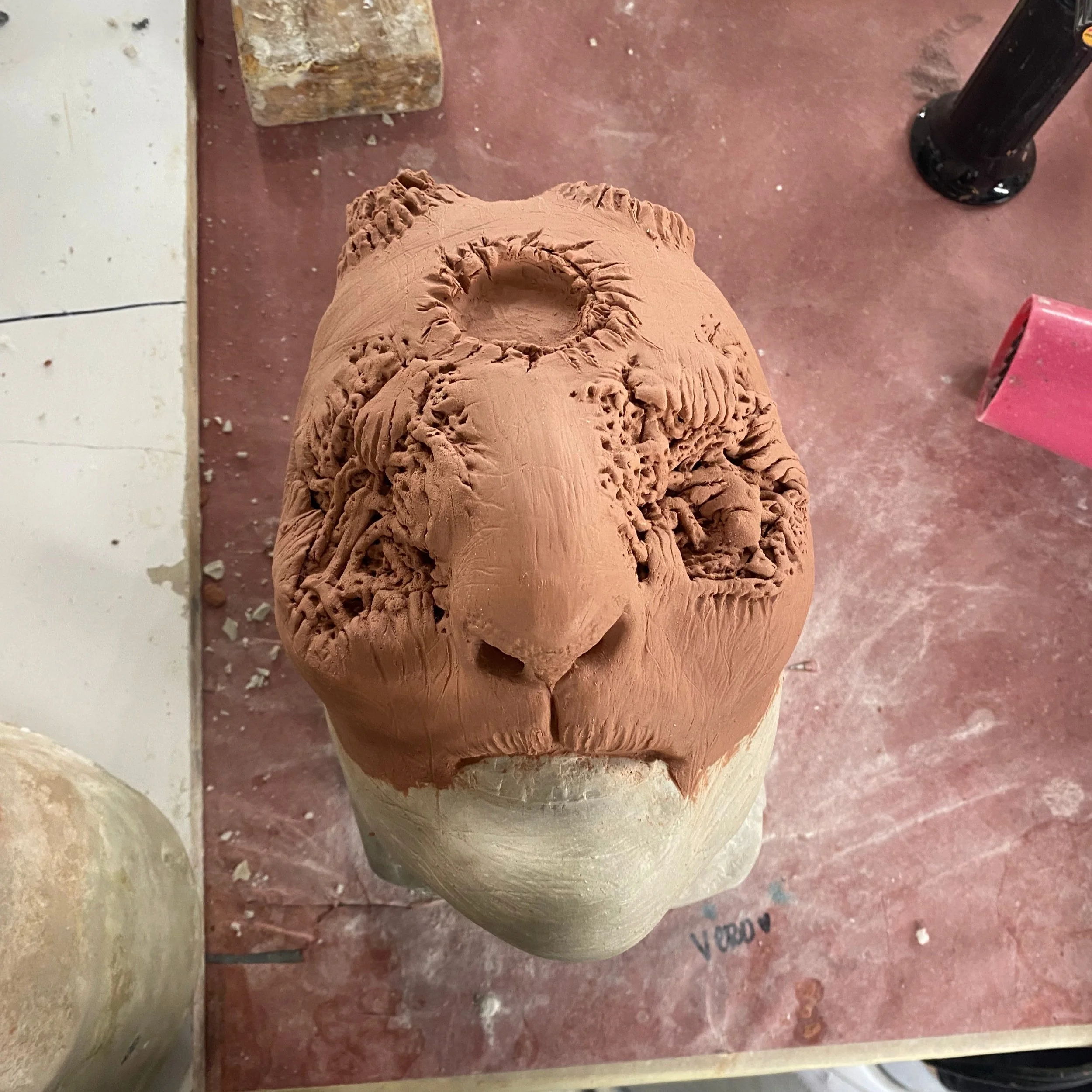 Third eye prosthetic sculpted for a flat mold in Chavant NSP Soft